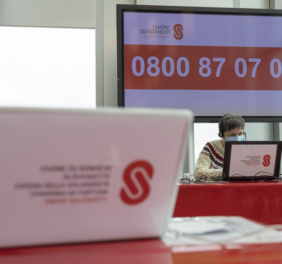 A central pillar of this mobilisation is the long-standing partnership, established 80 years ago, with the Swiss Broadcasting Corporation (SRG SSR). Its reach, credibility and regional roots enable it to simultaneously inform and raise awareness among the population in all linguistic regions and encourage solidarity. National appeals for solidarity, quadrilingual mobilisation with call centres in Zurich, Geneva, Chur and Lugano, and continuous coverage on SRG channels are key elements of this model.